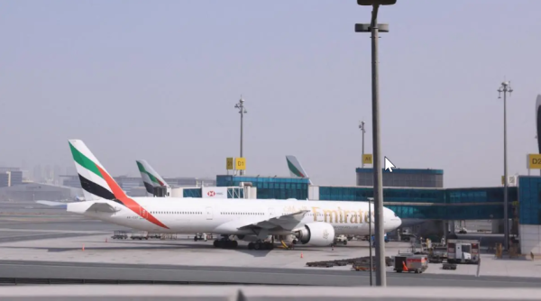 2026年3月2日,在美国和以色列对伊朗发动袭击后,飞机停在阿联酋迪拜国际机场3号航站楼。图源:彭博社
