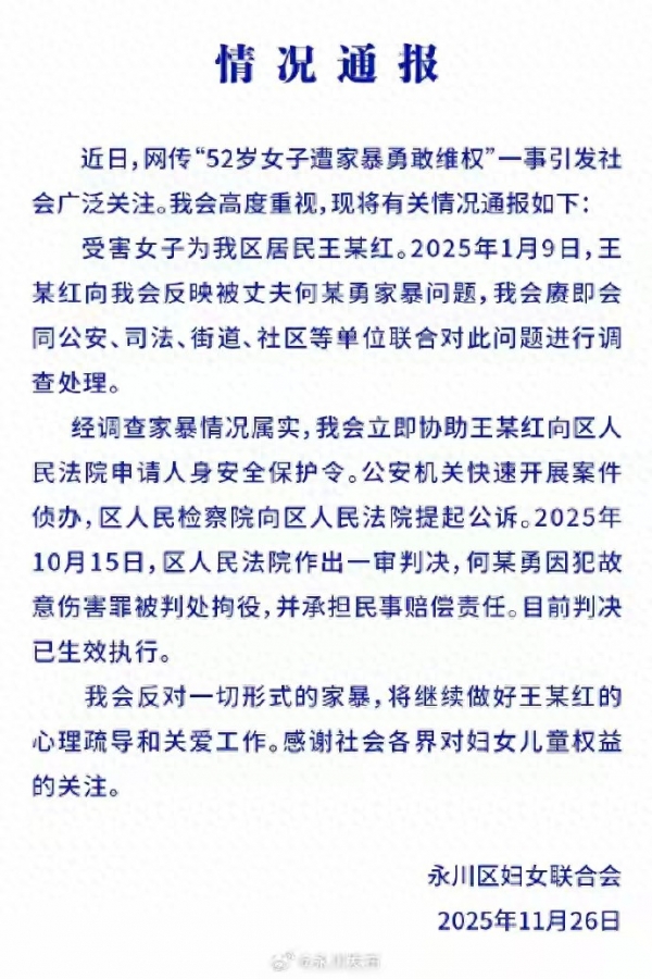 2025年10月15日,区人民法院作出一审判决,认定何某勇的行为已构成故意伤害罪,结合其家暴情节、造成的伤害后果及相关证据,判处其拘役,同时判令其承担相应的民事赔偿责任。目前,该判决已生效并执行。这些证据为后续维权和司法判决提供了关键支撑,也印证了家暴零容忍的法律态度。