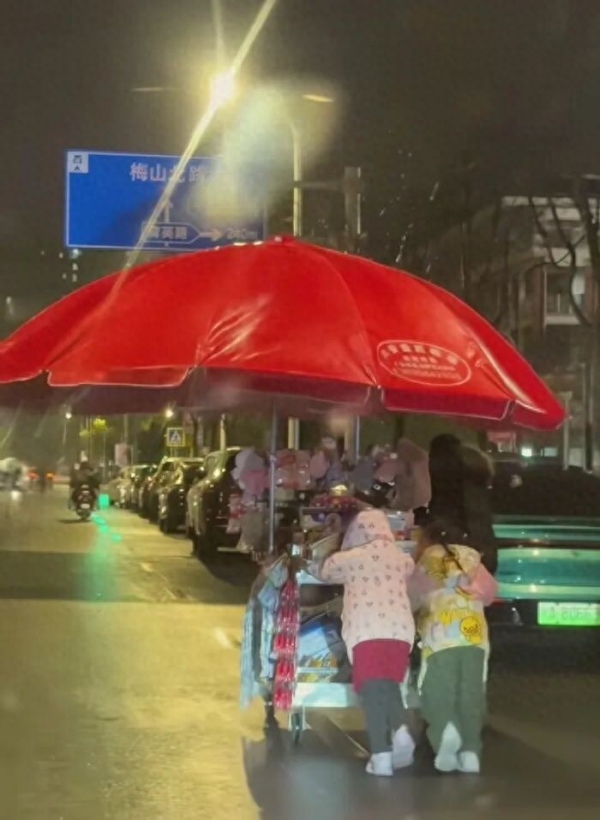2025年12月31日晚上,在六安市八公山北路银泰路段,两名年幼女孩帮家人推着摆摊小车前行,后方车主默默减速跟随,全程未鸣笛,在分别那一刻女孩转过身深深鞠躬致谢。记录这温暖一幕的视频被车主发布后立即引起广泛关注,还被人民日报关注并转发。