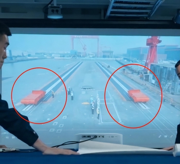 ("福建舰"弹射器上的测试用小车)
