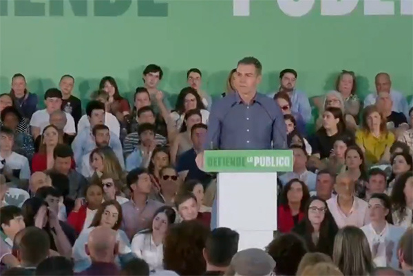 桑切斯在安达卢西亚出席了工人社会党的竞选集会,他在讲话中说:"欧盟是时候终止与以色列的联系国协议了。我们对以色列人民没有任何敌意,但是一个违反国际法、违背欧盟原则和价值观的政府,不能成为我们的合作伙伴。对战争说不。"