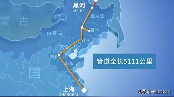 这条管道经过了俄罗斯两大气田:科维克金气田和恰扬金气田,由别洛戈尔斯克到达我国黑龙江的黑河,中途经过黑吉辽、内蒙、河北、天津、山东、江苏,最后抵达上海。