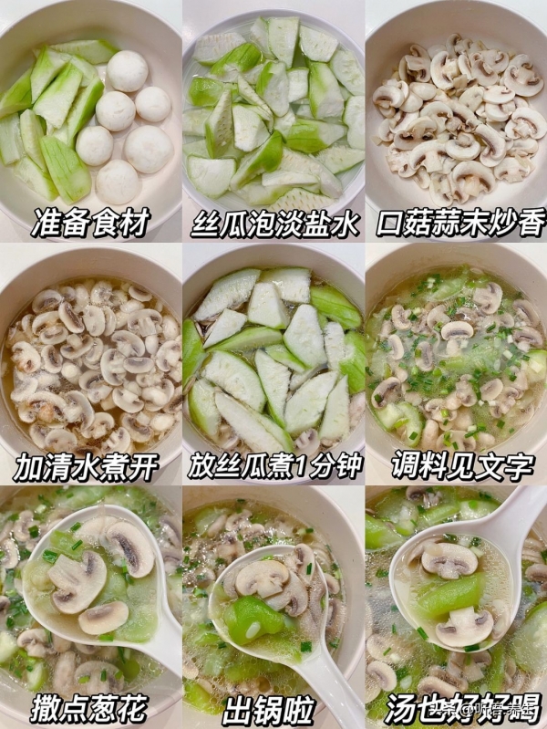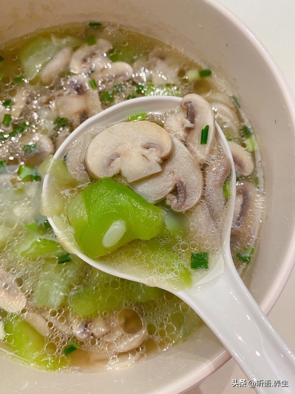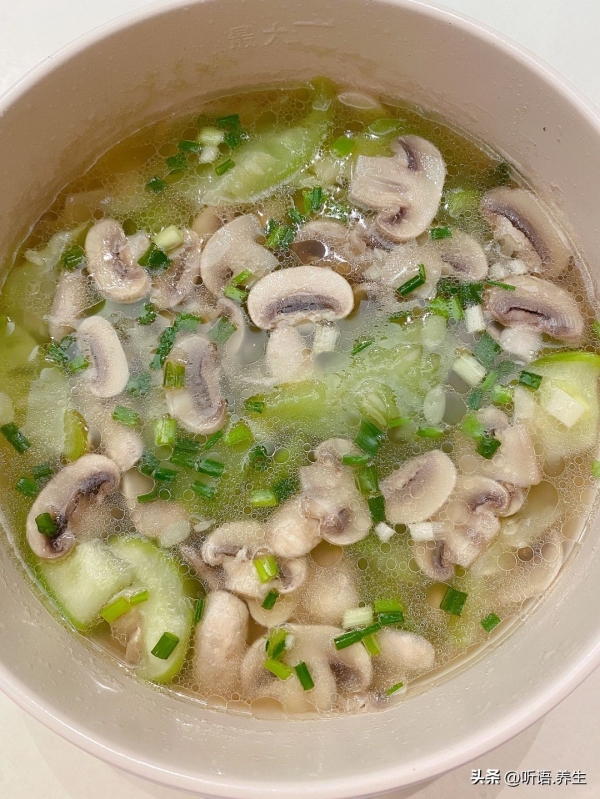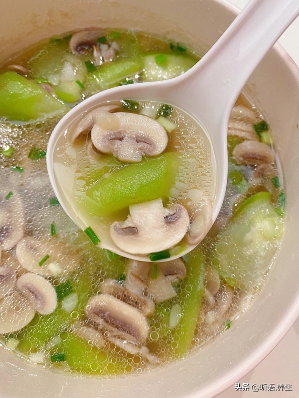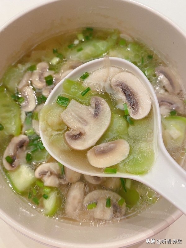 二、蘑菇丝瓜汤:清润解燥,秋天喝着胃舒服、肝没负担