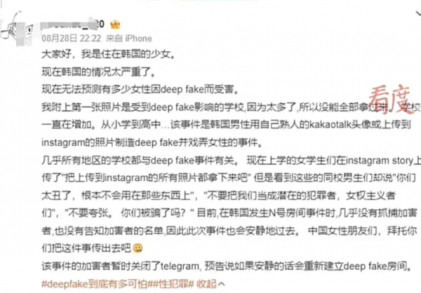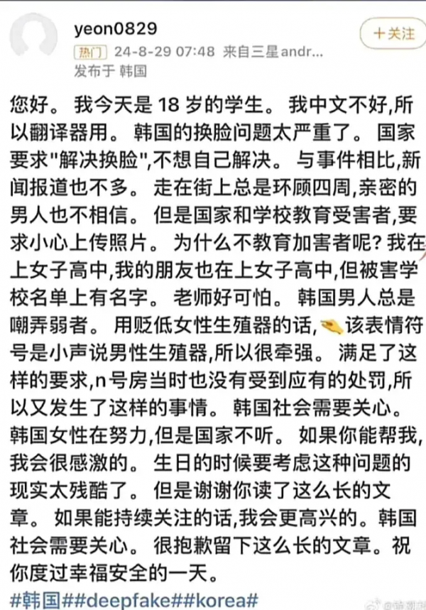 韩国继N号房事件之后,近日又陷入熟人房,此次受害女性人数众多,当地的解决办法却令人心寒,很多女性不得不翻译成各国文字发布,寻求帮助。