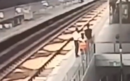 10月6日下午台湾发生惊悚推人落轨事件! 39岁陈姓男子无票闯入月台,遭站务员上前盘查时突然情绪失控,推站务员坠落轨道,差点遭列车辗过。