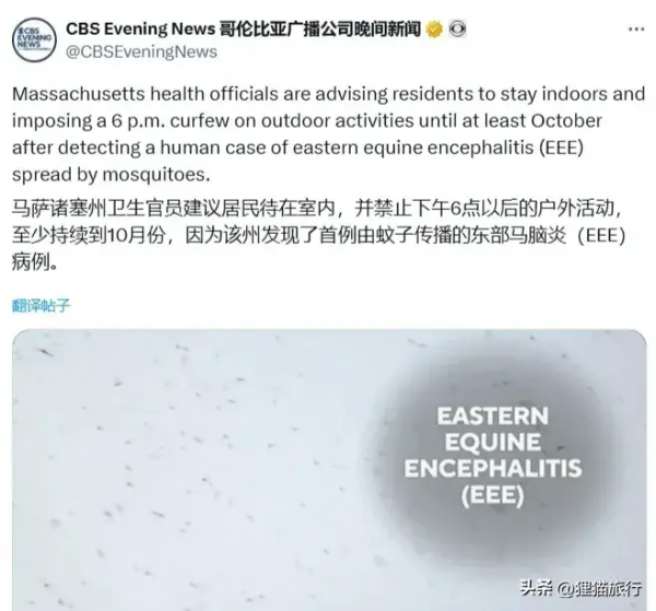 在美国,他们管这种病叫东部马脑炎,这里的东部指的是美国东部。接下来看美国怎么应对,这可是从美国麻省发现的,不知道能不能控制住,大家觉得美国这回能行吗?