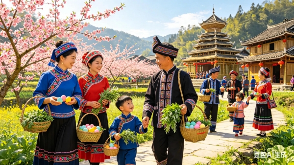 从文化内涵看,三月三有三重意义:一是黄帝诞辰,民间有"二月二龙抬头,三月三生轩辕"的说法,是祭祖敬宗的日子;二是暮春节点,此时阳气升发、湿气渐重,人体易受侵扰,习俗多围绕"驱邪、祛湿、护阳"展开;三是多民族共庆,壮族、布依族、畲族等都有盛大活动,如壮族歌圩、布依族祭山、畲族乌饭节,形成多元共生的民俗体系。
