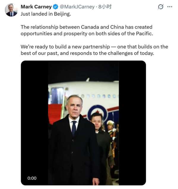 抵达北京的加拿大总理卡尼通过社交媒体发文