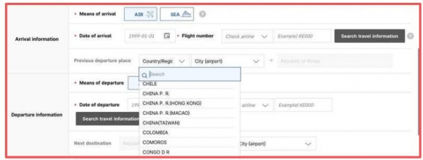 在填写电子入境卡K-ETA时,出发地下拉菜单里,台湾两个字不见了,取而代之的是中国(台湾),跟中国香港、中国澳门整整齐齐地排在一起。