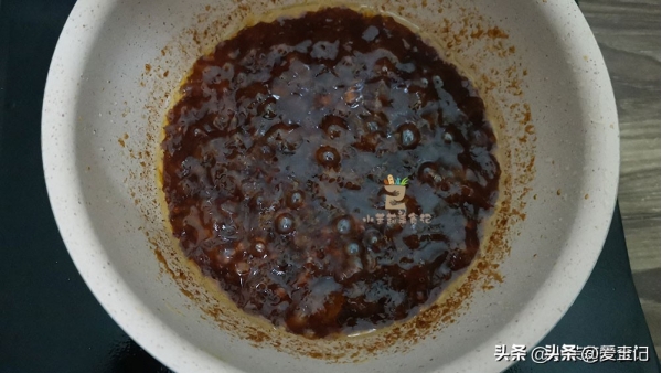 4、一勺豆瓣酱,一勺甜面酱,再加一勺生抽,混合搅拌到一起。