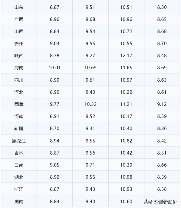 今日油价(4月11日)92,95,98汽油与0号柴油请看下方油价列表