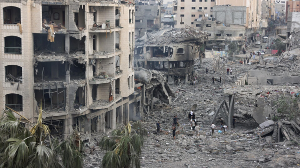 ▲被以色列军队摧毁的满目疮痍的加沙城