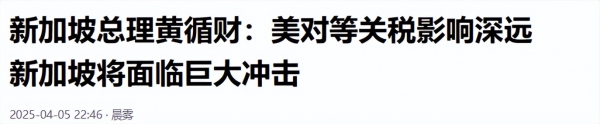 2025年4月4日,新加坡总理兼任财政部长黄循财就通过社交媒体发表视频讲话,强调新加坡人必须为"更大的冲击做好准备"。