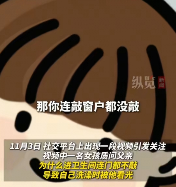 11月3日,一名女孩在网上发布了一段视频,视频里,女孩对着父亲情绪激动地抱怨,说父亲好几次在她洗澡、换衣服的时候,没敲门就擅自进来,已经发生过四次这样的情况了。