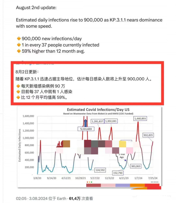 老美新变异株 KP.3.1.1 反超并占据主导地位。西方进入了 KP.3.1.1 时代,谱写新纪录!