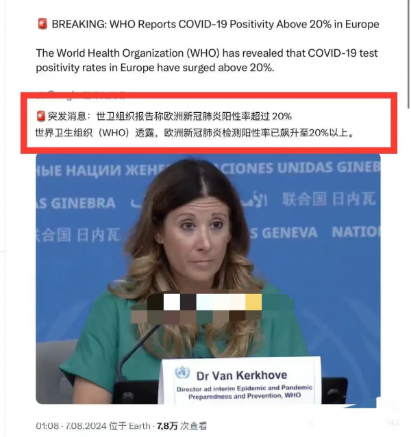 世卫在联合国发布会上表示:欧洲新冠阳性率高达 20%,全球约为 10%。
