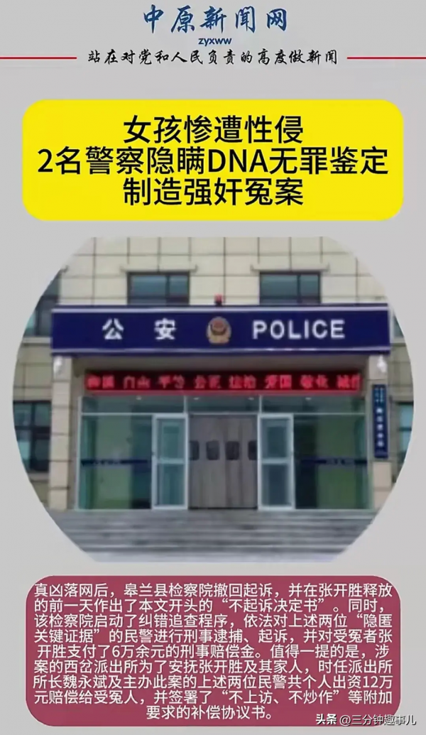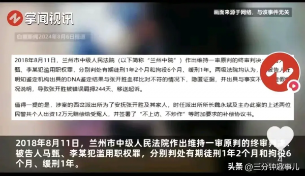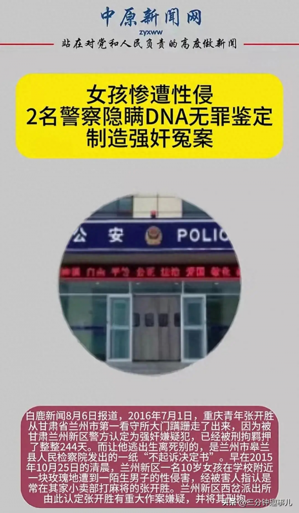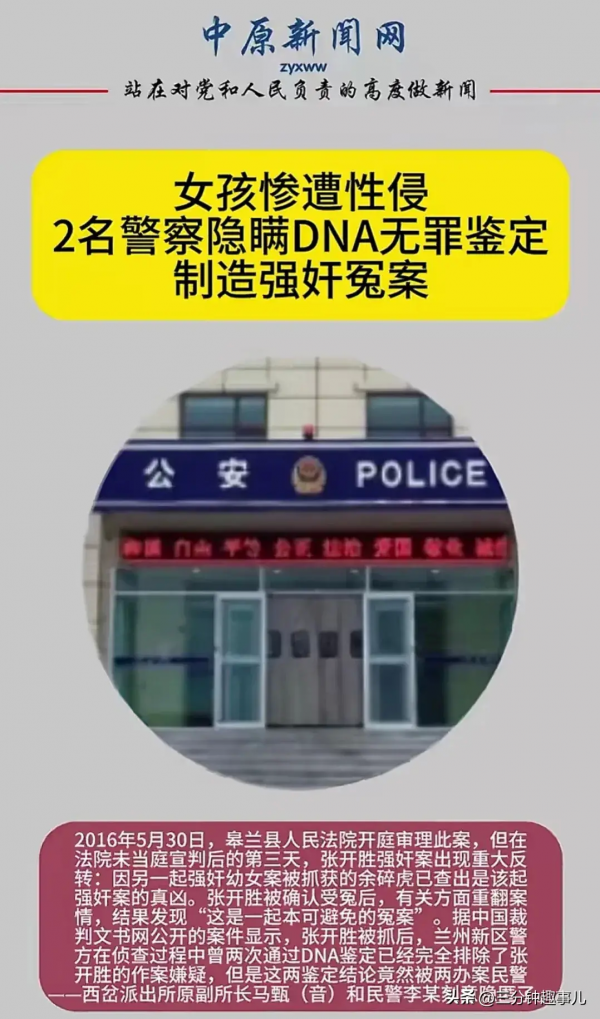 原来,兰州新区警方在侦查过程中曾两次通过 DNA 鉴定排除了张开胜的作案嫌疑,可这关键的鉴定结论却被西岔派出所原副所长马甄和民警李某刻意隐匿。
