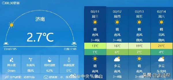 这轮升温过程中,北方气温的高点将出现在13日前后,南方则在14日前后。