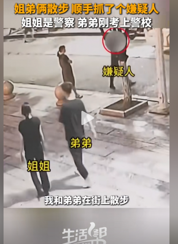警察姐弟散个步的功夫碰巧抓到到了一名嫌疑犯。这嫌疑犯是来给姐弟刷业绩来了。