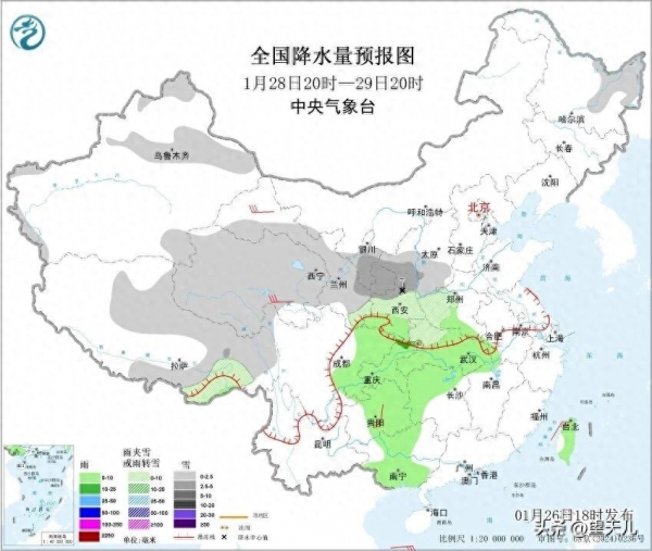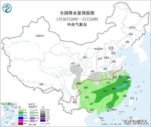 1月29-31日,受中等偏强冷空气影响,新疆北部、内蒙古中西部、西北地区、江南中西部、西南地区东部、广西北部等地降温4~6℃,局地降幅超8℃;中东部地区有较大范围降水天气过程;青藏高原东部、西北地区东部、华北、黄淮西部和南部、江汉、江淮、江南西部等地有小雪或雨夹雪,其中陕西、山西、河南等地部分地区有中到大雪,局地暴雪,湖北西部、湖南西部及贵州东部等地局地有冻雨,西南地区东部、江南、华南等地有小到中雨。