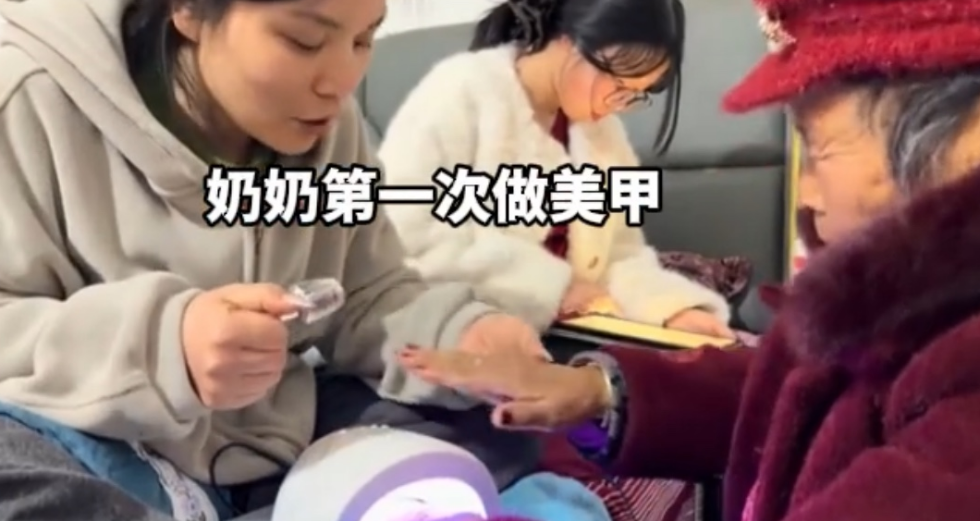 轻轻打磨、细心上色,没有夸张的款式,只有温柔干净的底色,让百岁老人的双手,瞬间精致又喜庆。