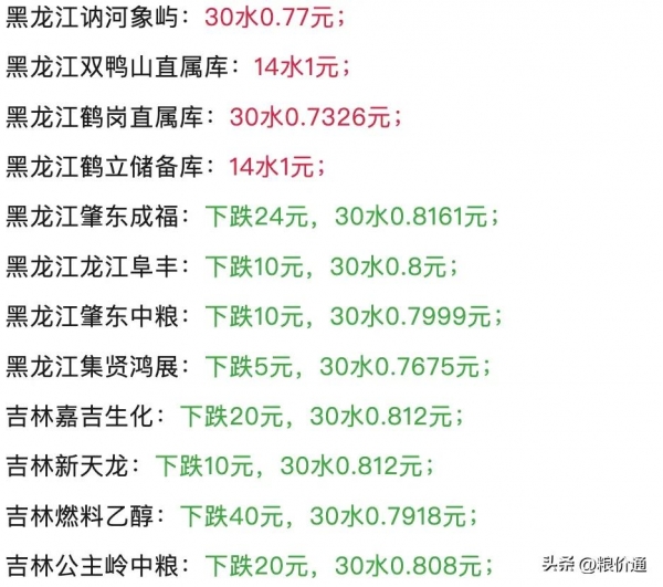 黑龙江中储粮鹤岗直属库开启收购25年新季玉米,14水潮粮折干价格0.925元/斤,30水潮粮0.7326元/斤;