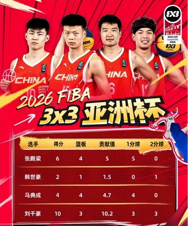 聊到这里,必须重点夸一夸刘千豪,他真的是本场比赛的头号功臣!全场独得10分,两分线外8投3中,还有全队最高的2次关键助攻和3次突破,表现极为突出,不仅帮助球队拿下胜利,还凭借本届亚洲杯的出色发挥,成功入选赛事最佳阵容,年仅23岁的他,第一次参加成年三篮国家队之旅就交出如此亮眼的答卷,未来真的不可限量!