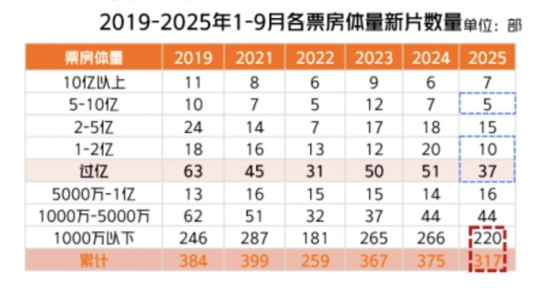 更危险的趋势是,年轻观众在持续流失。拓普数据报告显示,2025年,购票人群中的 25 岁以下的 00 后年轻群体占比跌破新低,市场上迎合年轻观众偏好的影片相对稀缺,在今年以来票房 5 亿以上的影片中,仅有《罗小黑战记2》《唐探1900》这两部影片年轻观众占比超过 20%。