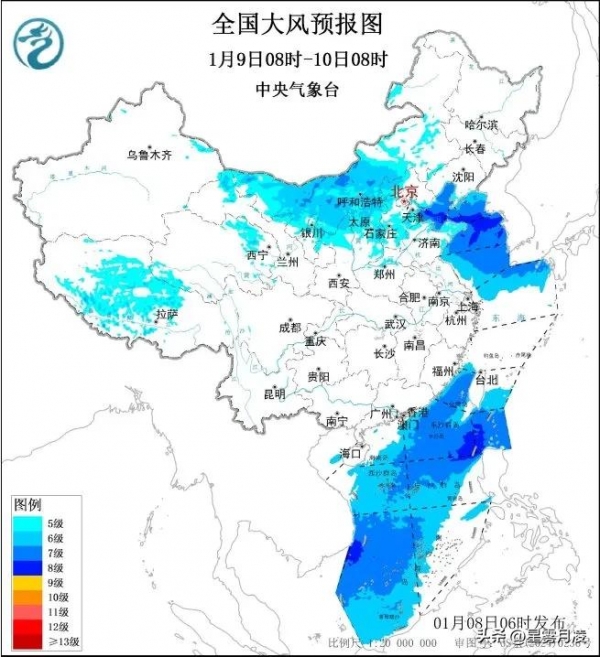 风力方面,内蒙古、辽宁中南部、甘肃河西、陕西北部、华北、黄淮、江淮4-6级;渤海、渤海海峡、黄海中北部、巴士海峡阵风可达9级。
