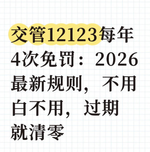 交管12123,每年给每位车主4次免罚机会,2026年全国统一、规则更清晰、线上直接办。