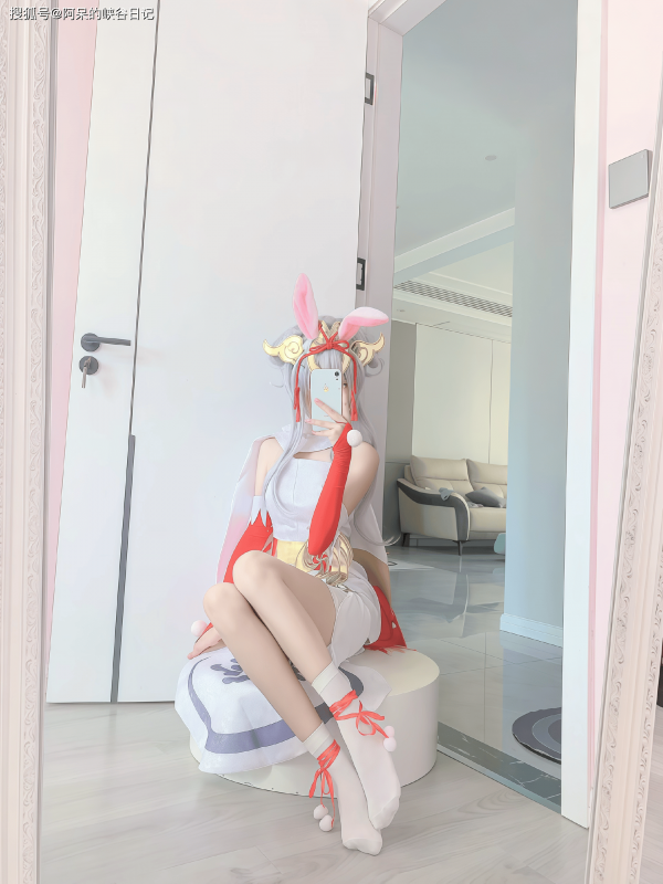少女在拍照时,虽然手机挡住了脸部,但从她的动作和姿态中,我们可以感受到她对这个角色的热爱和投入。