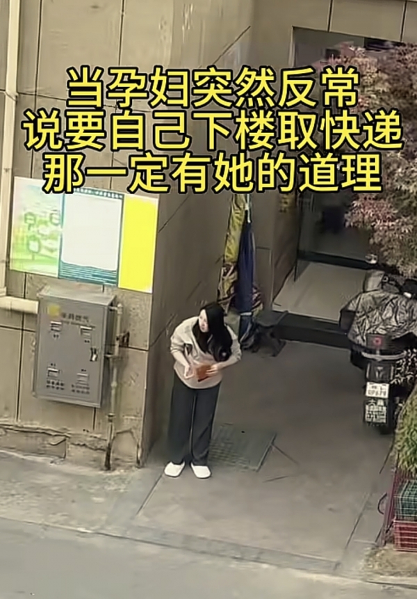 这一天孕妈妈说自己下去拿个快递,老公本来想陪她去的,但是她说不用我去拿就好了,也没有多重,你自己在家吧,还给老公安排了个在家的事儿。