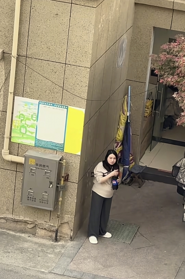 而妻子这段时间估计是忌口忌得有点严了,可能是嘴馋了,要下去悄悄吃东西,老公也看破不说破,但是却悄悄地跑到小区小卖部对面的阳台去看。