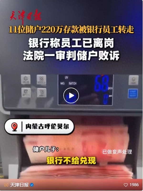 内蒙古某银行员工孟某芝利用职务之便,将11位储户共计220万元存款转走并挥霍一空。法院一审判决银行无需赔偿,理由是员工行为属于个人犯罪。储户不服上诉,案件引发社会对银行责任边界的激烈讨论。