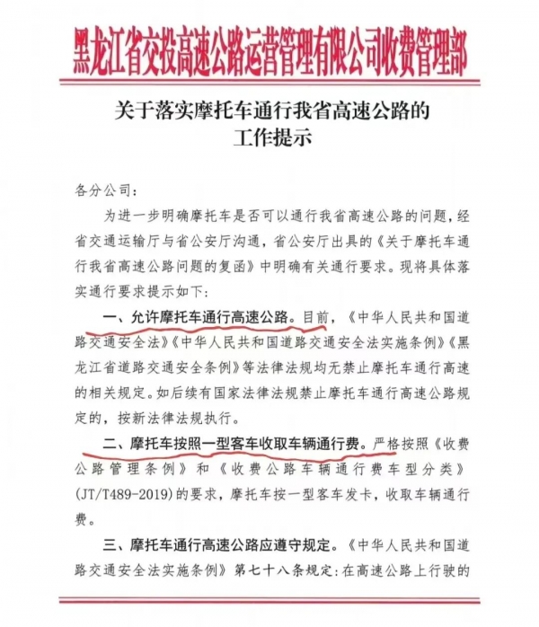 早在9月黑龙江省公开发文,明确了摩托车可以上高速,东北三省、北京、天津、河北、湖北、贵州、云南、新疆等,摩托也能上高速,仅这一点就占据了"地利"。