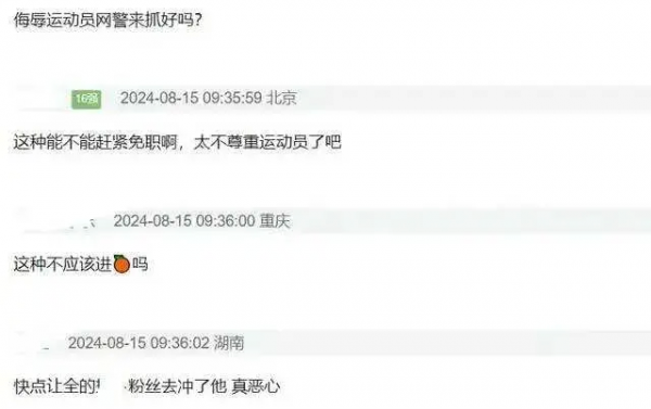 可是,谁能想到一个那么资深的体育记者,竟然不尊重运动员,令人愤怒不已。