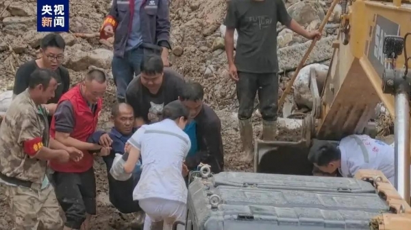 这是7月20日拍摄的四川省雅安市汉源县马烈乡新华村救援现场(视频截图)。
