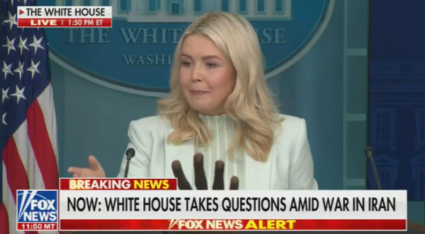 莱维特回应油价高企:特朗普是为了你们才这么做的。记者会视频画面截图