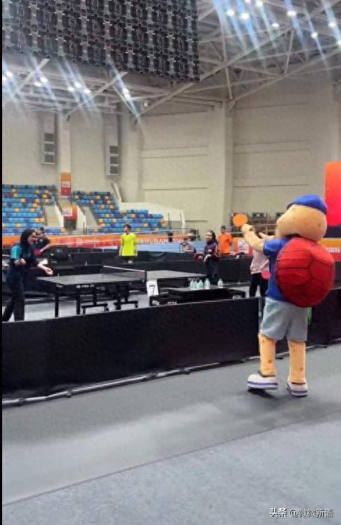 在印度举办的亚锦赛明天正式开赛,今天看到比赛场地也布置完毕,运动员们在场馆里进行赛前训练。刚刚看到这次亚锦赛的吉祥物来到比赛场馆和运动员打招呼,背上还背着龟壳了。