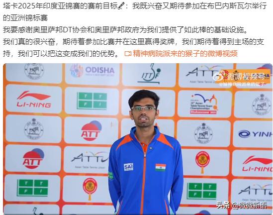 今年的亚锦赛是在印度,看到采访了本土运动员巴特拉和塔卡,巴特拉说这次的基础施设和场馆都很不错,塔卡说这次亚锦赛的目标是希望在这里赢得奖牌,期待得到主场的支持,他们可以把这变成优势,塔卡也说基础设施很棒。他打球有特点,所以能记住。