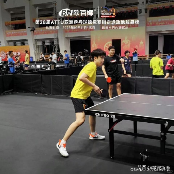 下午换件衣服接着练球,看来施工方昨天晚上加班了,今天球馆布置好了,再不布置好就赶不上比赛用了。王楚钦这是和周启豪在练球,甜甜在旁边看着,现场的摄像记者也挺多的,期待后面更多的报道。确实,运动员们刚刚参加完中国大满贯,刚休息两天,就又耗时20多小时奔赴印度,太辛苦了。