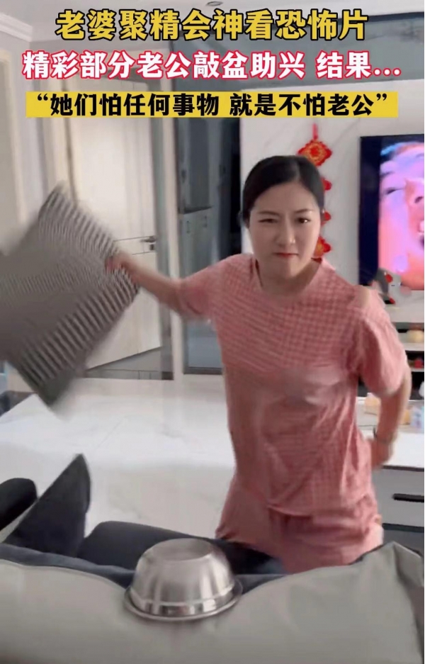 还有网友调侃说:她们女人什么都怕,就是不怕自己老公。看个恐怖片都不敢,对自己老公那是真敢下手啊!