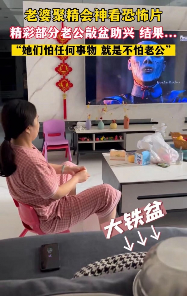 这一次也是如此,妻子坐在小凳子上,兴致勃勃地盯着电视看她的恐怖片,男子却觉得万分无聊。