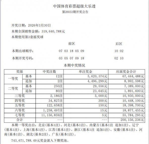 大乐透26033期开奖信息: