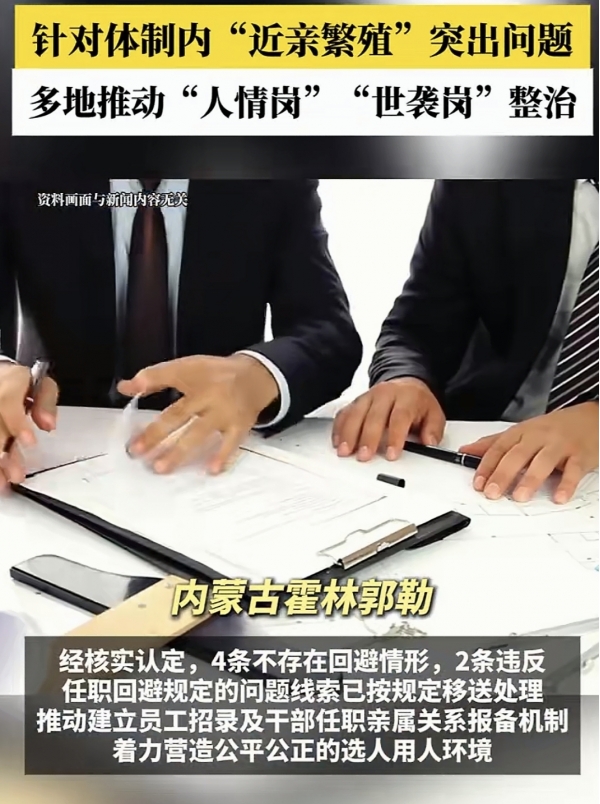整治工作以"精准摸排、靶向治理"为核心思路,首要任务便是厘清国企员工亲属任职关联脉络。各地通过细致核查,重点摸清员工配偶、父母、子女等近亲属在本单位及关联产业链企业的任职情况,建立详实的亲属任职台账,彻底打破"隐性亲缘圈"的信息壁垒,为后续整治工作筑牢数据基础。针对排查中暴露的违规录用问题,各地秉持"零容忍"立场,严厉打击通过打招呼、递条子、量身设置招聘门槛等违规手段安置亲属的行为,对不符合任职标准的人员坚决予以清退或岗位调整,以铁腕手段扭转用人不正之风。