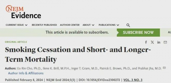 2024年2月,加拿大多伦多大学发表在《新英格兰医学杂志》子刊上的一项研究,对148万成年人进行了15年的随访,随访过程中有122697万人死亡。在调整了年龄、教育、饮酒以及肥胖等因素后发现,吸烟者相较于未吸烟者,死亡风险更高。