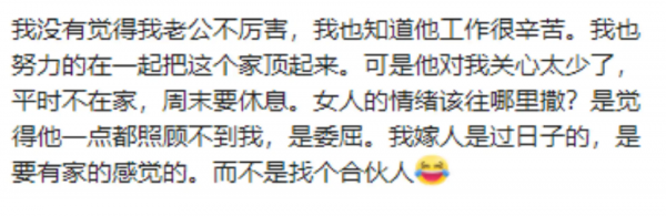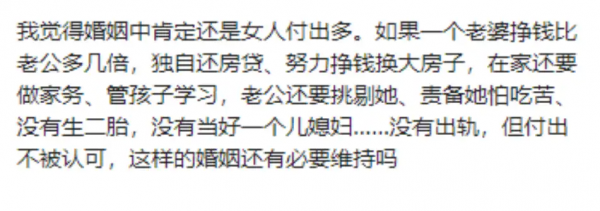 在婚姻中,无论是夫妻双方还是外界的人,都应该有一个理性的态度,不应该一味地去评判别人的婚姻,也不应该被他人的婚姻观所左右,每对夫妻都有自己的相处之道,也都会有自己的矛盾和问题,重要的是要懂得如何去处理这些问题。