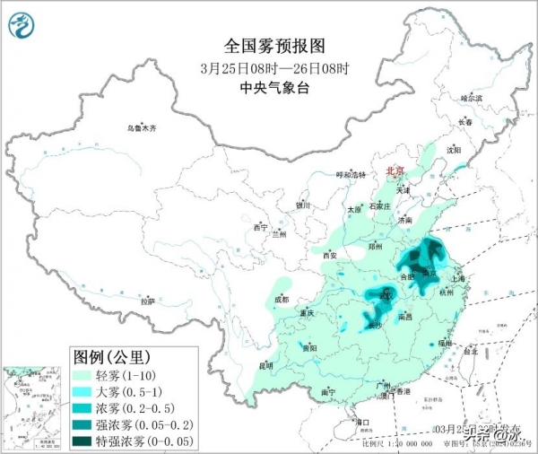 除了夜里要下雨,明天早上还有一个"拦路虎"--大雾。