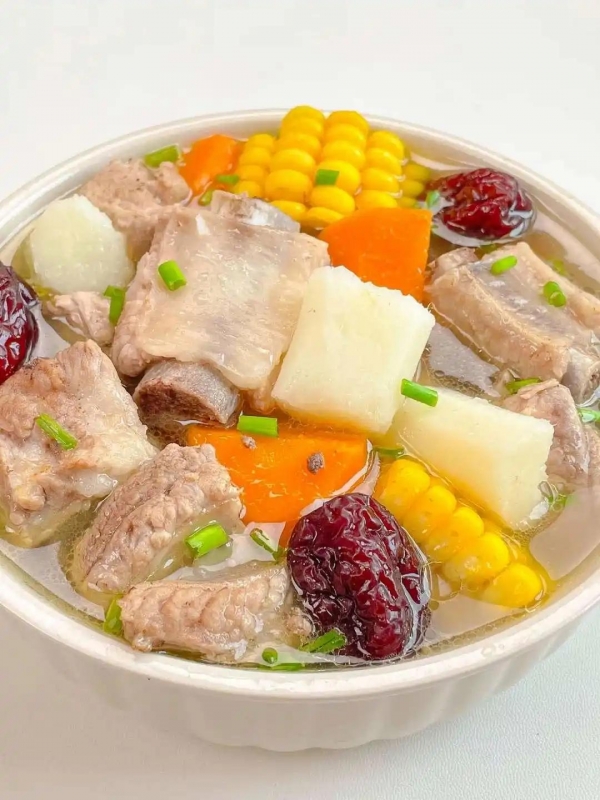 3. 山药炖排骨:排骨焯水去血沫,和姜片一起下锅炖1小时,加入山药块再炖20分钟,加盐调味就行。汤鲜不油腻,山药吸满肉汤,吃着又粉又糯,补而不燥。