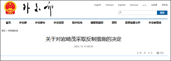 外交部网站12月15日消息,外交部发布对岩崎茂采取反制措施的决定。全文如下:
